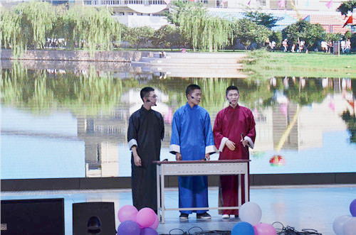 EM街舞社火热激情的开场舞,迅速点燃了晚会的激情,快速流畅的舞步伴以重鼓与电音以及多种乐器交杂的舞曲,极富有冲击力的视觉震撼,年轻人的骄傲与蓬勃,用跃动的身姿表达自己内心的情感。杯子舞《稻香》带你回到童年,朗诵《秋瑾》让台下观众感受到女革命家铮铮铁骨,追求理想与信念的不屈。宁夏坐唱《白字经》、乐器《百家欢歌》带领师生们领略了宁夏的风土人情……晚会在师生齐唱《歌唱祖国》中落下帷幕。