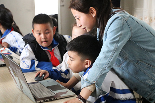 活动中,志愿者为同学们进行讲解,让小朋友们初识了Scratch的编程环境。随后,志愿者以“一对二”的形式进行分组,教小朋友们如何自己动手制作简单的Scratch动画和游戏,简述了Scratch的编程环境及使用方法。整个活动中孩子们热情高涨,积极参与。