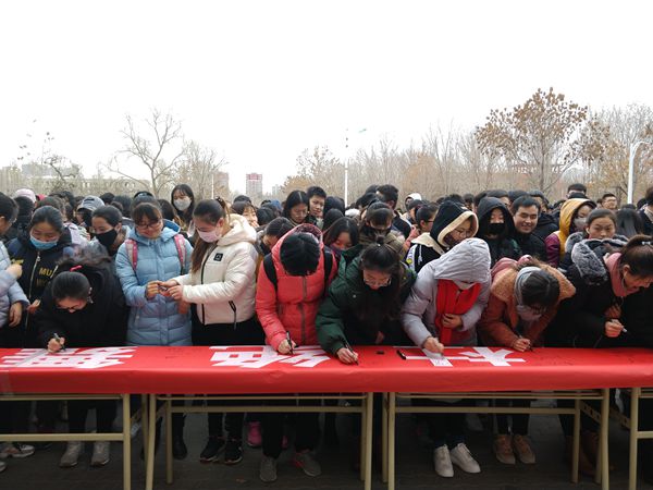学院学生会主席田雨向同学们发出诚信考试的倡议,号召大家诚信考试,以良好的心态积极迎接考试。学生会副主席刘继甜同学宣读了《澳门十大信誉网赌大全学生考试违规处理办法》,让大家对考试中的违规行为有了更加清晰的认识。随后,团委副书记范志毅带领大家进行了庄严的诚信考试宣誓并在横幅上签下了自己的名字。