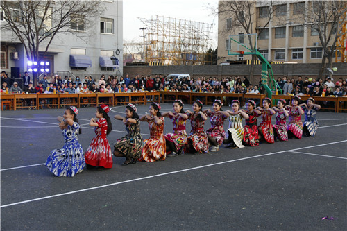 纳吾肉孜节是维吾尔、哈萨克、乌孜别克、柯尔克孜、塔塔尔、塔吉克等民族的传统节日,也叫迎春节,意即春天伊始,开始进入春耕时节。露天的舞台,开放的形式,伴随着悠扬动听的维吾尔族舞曲,晚会正式开始。身着艳丽民族传统服饰的同学们踩着欢快的鼓点激情起舞,倾情演唱的魅力歌手、热血沸腾的劲爆旋律、清新质朴的吉他弹唱、积极互动在哈萨克集体舞中的老师同学,一次又一次地把晚会的气氛推向高潮。期间,还穿插了颁奖环节、游戏环节,使同学们广泛参与其中,感受节日的欢乐气氛。