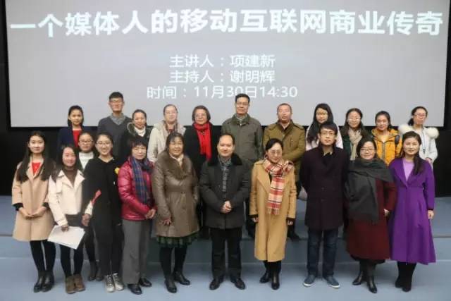 【澳门十大信誉网赌大全新闻中心讯 新闻传播学院】11月30日下午2:30在澳门十大信誉网赌大全贺兰山校区科技楼一楼报告厅,新闻传播学院传媒大讲堂系列讲座之“一个媒体人的移动互联网商业传奇”如约而至。本次传媒大讲堂邀请到著名媒体人、诗人、“为你诵读”客户端首席执行官项建新主讲,新闻传播学院谢明辉老师主持。