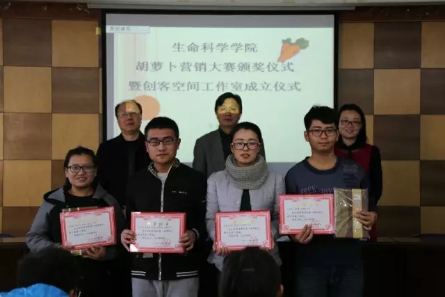 首先,叶志春副书记宣布了生命科学学院创客空间工作室成立,并向第一届营销大赛的成功举办表示祝贺。创客空间工作室主任由叶志春副书记担任,下设三个部门,三个副主任,旨在服务于同学们的创新创业工作,为同学们提供更大的创新空间。学院领导及老师为三个部门副主任颁发了聘书。