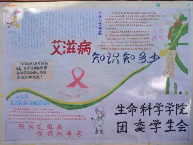 虽然已是寒冬腊月,但丝毫挡不住志愿者们的热情。本次宣传活动主要以悬挂横幅、制作宣传海报、发放预防艾滋病宣传手册的形式进行。生命科学学院志愿者佩戴着象征艾滋病宣传大使的红丝带,向往来的师生发放预防艾滋病宣传手册、日历以及计生用品,并提醒同学们了解艾滋病防护知识,携手抗艾。同学们还在手心写下了对世界艾滋病日的真诚寄语。
