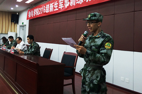 之后,赵永军发表军训动员讲话,向新生们阐述了军训的目的、意义和要求。他强调,在军训期间学生必须纪律严明,服从指挥,团结协作,步调一致,从而达到科学训练,安全训练的目的。王巳卉老师对2016级新生的军事训练纪律进行具体说明,对军训工作小组做出安排。