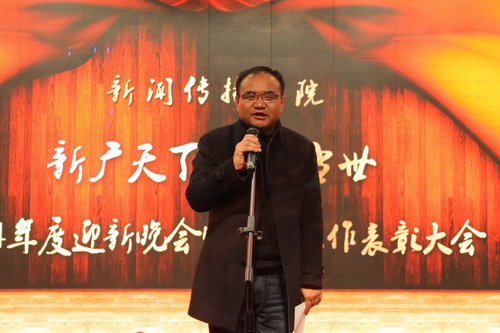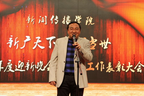 12月29日晚7点,新闻传播学院2014年“新广天下 传闻当世”迎新晚会暨学生工作表彰大会在校本部A区国际交流中心隆重举行。新闻传播学院书记、常务副院长周强,副院长宫京成等出席晚会,学工办老师、学院学生代表及人文学院的部分老师参加了晚会和会议。