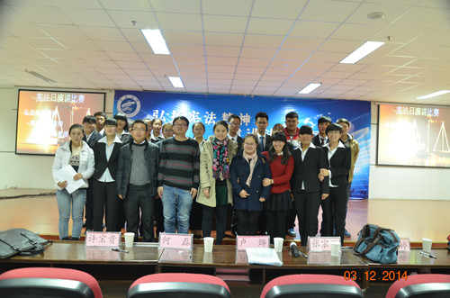比赛中,16名选手紧紧围绕“弘扬宪法精神,树立法治信仰,提升法治素质”的活动主题,从追溯宪法历史、讲述宪法日来历、树立宪法至上意识、弘扬宪法精神、展望宪法梦、争做守法人等方面进行激情演讲。其中一些选手通过齐玉玲案、孙志刚案等推动中国法治进程的典型案例分析中国现在面临的法治问题,以及建立一个法治国家的重要性等层面展开深入思考使活动达到高潮。最后,学院法律系教师何磊博士就16位选手的台上表现做了细致的点评,使各位选手通过参加本次活动得到了更大的提升,同时,他就如何建设法治国家发表了自己的见解,使同学们受益匪浅。