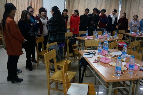 参加本次交流会邀请了大学英语四、六级的考试以500分以上的成绩通过专业英语四级考试的优秀学生做交流发言。交流的内容从听力到泛读再到翻译、写作。交流的同学认真细致,不仅准备了ppt,还通过再现原题、总结题型等方法分享自己应试的技巧和心得。随后同学们还准备和茶点和水果,进行了分组讨论和有趣的单词接龙游戏,并向获胜选手赠送了“词汇周计划”单词书作为奖品。