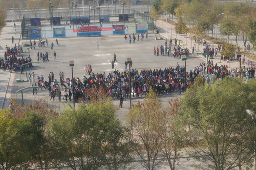 本次比赛以促进各年级、班级间的交流为宗旨,丰富学生的校园文化生活为目的,以比赛形式为同学们提供展现集体风采的舞台,发扬团队精神,增强凝聚力,以班级为单位,实行淘汰制晋级方式,抽签决定比赛顺序。比赛还未开始时,双方队员即进入“战斗”状态,双手紧握麻绳,身体微向后倾,参赛队员齐心协力凝成一股绳;哨声一响,啦啦队口号震天、气势轩昂。号子声、加油声,此起彼伏,飘荡在整个篮球场上空。