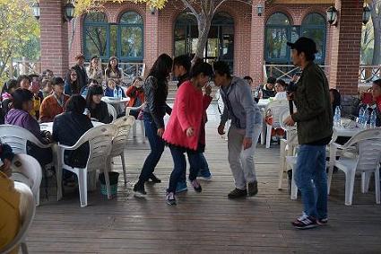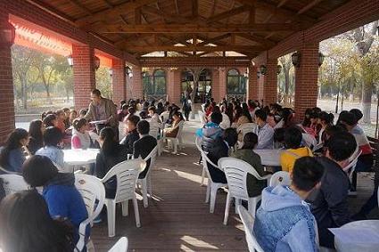 整个活动围绕主题“MyUniversityMyDream”有序进行。外院教师将来自不同学院的学生分成小组,并分发了活动所需的复印材料。随后,在主持人王丽江老师的带领下,外教Chelsea走近每个小组和同学们交流,来自乌兹别克的外国留学生金扬也积极融入到英语角中。活动中,同学们就“我的梦想”分组展开了积极的讨论,并派出各个小组的代表进行即兴演讲,表达了自己对宁夏和中国未来的构想。金扬还组织同学们做了有趣的英语互动游戏。整个活动气氛活跃,英语氛围浓厚,大大提高了同学们的英语学习兴趣。活动尾声,主持人王丽江带领大家共同演唱了英文歌曲“YouareMySunshine”。伴随着优美的歌声,历时近两个小时的英语角活动圆满结束。