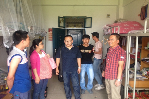 【澳门十大信誉网赌大全新闻中心讯数学计算机学院海天/图文】为加强学生公寓安全管理,维护暑期安全稳定工作,7月9日下午3:00,数学计算机学院全体辅导员老师会同后勤集团副总经理张宁老师和B区宿管科科长夏国辉老师来到B区、C区学生宿舍了解学院学生暑期离校情况。