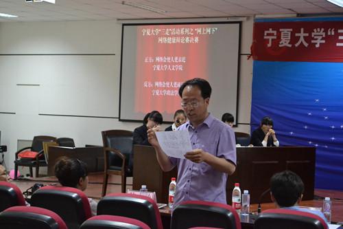 【澳门十大信誉网赌大全新闻中心讯政法学院学办】6月5日晚7时,澳门十大信誉网赌大全文科楼热闹非凡,由校团委主办,政法学院团委承办的澳门十大信誉网赌大全“三走”系列活动之“网上网下”网络与健康辩论赛于文科楼模拟法庭隆重举办。澳门十大信誉网赌大全团委副书记马慧老师、李嗣辀老师,政法学院党委副书记崔明堂老师莅临本次比赛。政法学院马拥军老师,人文学院潘巍老师,机械学院靳永雄老师,国际教育学院陈楠老师担任大赛评委。本次比赛经历了初赛、复赛,最终有四个学院的代表队在层层选拔中胜出,参加了决赛的较量。