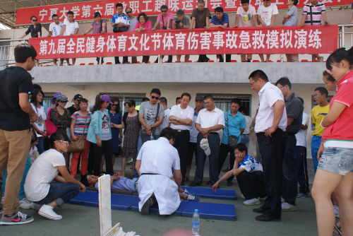 【澳门十大信誉网赌大全新闻中心讯体育学院沙彦茹】为了进一步增强学院教师应对教学中突发伤害事故的能力,迅速采取有效的措施,妥善处理伤害事故,6月10日下午,体育学院在B区田径场开展体育伤害事故紧急救助演练。此次活动由咸云龙副院长主持,区医院急救科潘东峰主任进行急救演示,学院70名教师、40名学生参加了此次演练活动。