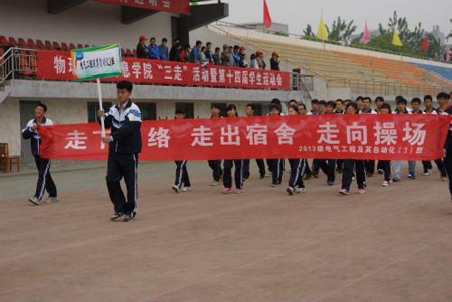 【澳门十大信誉网赌大全新闻中心讯物电《声光》记者站刘艳】5月10日上午,澳门十大信誉网赌大全物理电气信息学院“三走”活动暨第十四届学生运动会在B区运动场顺利召开。