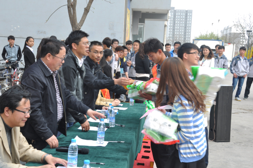 许义泉宣读了本次系列活动方案。本次活动的目的在于督促学生养成良好的生活习惯,掌握安全用电、消防、紧急避险的常识,丰富学生课外生活。活动包括安全用电签名活动、宿舍安全知识主题报告会、宿舍风采大赛、棋类比赛、宿舍禁烟活动、化妆大赛和消防安全知识竞赛等。2011级学生代表孙义辉宣读了文明宿舍创建承诺书,郑重承诺远离大功率用电器,注重宿舍文化的建设,努力创建具有机械特色的学生宿舍,为机械工程学院争创精神文明单位做出自己的贡献。学生代表在与会领导和老师的见证下郑重在承诺书上签字。