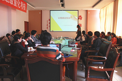 按照学院要求,班级负责人通过PPT将班级2013-2014学年第一学期的基本情况从班级建设、党团建设、学风建设、公寓建设、安全管理等五个方面进行了详细的介绍,介绍中既有各班取得的成绩、荣誉,也包含请假、旷课、挂课、未按时缴纳学费等不足之处。此次量化考核,旨在实事求是地通过各个方面,让大家通过考核看到不足,通过考评看到差距,以期各班在今后的班级管理中更好地取长补短,不断提升班级建设的水平。