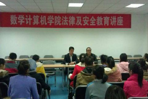 【澳门十大信誉网赌大全新闻中心讯数学计算机学院马玉琼/文王子兴/图】根据信誉网赌《关于开展社会管理综合治理宣传月活动的通知》精神,为加强我院学生的安全教育工作,增强法制观念和校园安全意识,3月11日晚,数学计算机学院率先开展了“社会管理综合治理宣传月”活动,邀请了银川市检察院政治部文彦博检察官为我院学生做以“法律及安全教育”为主题的法制安全教育专题讲座。院学生工作办公室主任黄锐诚老师主持了本次讲座。我院全体团学干部、各宿舍学生代表以及2013级全体新生聆听了讲座。
