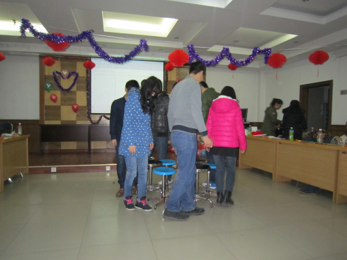 随后在学院二楼报告厅举行了室内趣味游戏,主要包括抢板凳、猜五官、踩气球等。最后伴随着2013级赵宁和马婷笑料百出的小品、2012级张豆豆优美悦耳的流行歌曲以及2011级雷晓婷欢乐愉快的新年祝福歌曲结束了本次研究生迎新年文体活动。