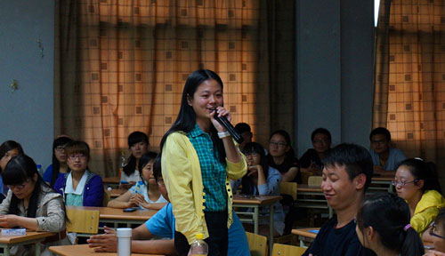 活动以唱一首歌曲、看一部短片、诵一段经典、讲一个故事、作一番点评的形式开展。为更加贴近当代大学生的生活,体现外国语学院的专业特色,期间还加入了学生创新环节。有同学们自编、自导、自演的精彩道德小品,在欢笑中体悟爱心善举;有听英文描叙,竞猜中华道德成语的互动游戏,在学习中重温传统道德。活动开展的形式新颖、内容饱满、时间紧凑、互动性好、感染力强,同学们真正地体会到了道德的内涵,也深深地被善举的力量所感染。同学们纷纷表示,讲道德,就是要从我做起,从身边小事做起,做好事不一定要轰轰烈烈,只要拥有一颗真诚的心,再简单的行动也会带来很多感动。而怀着感恩的心,将爱心传递下去,就是让这个社会变美好的生生不息的动力。