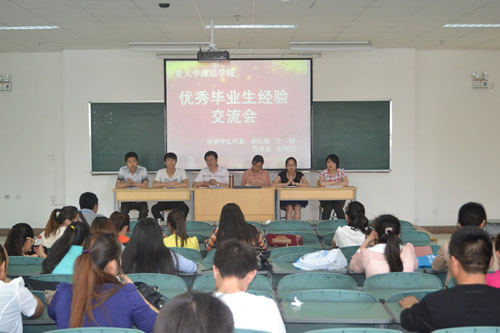 【澳门十大信誉网赌大全新闻中心讯 政法学院报道】5月22日下午,政法学院在文科楼132教室举行优秀毕业生经验交流会。政法学院2009级优秀毕业生苏皇凰、胡纪康、齐健、石海霞同学分别向到场的2010级100多名学弟学妹们作了交流发言。