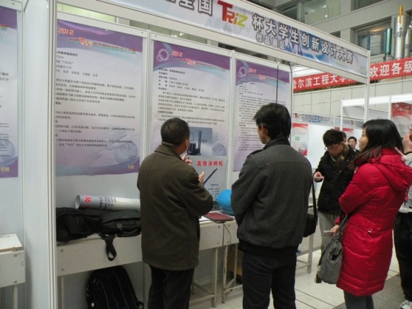 2012全国“TRIZ”杯大赛由哈尔滨工程大学承办,来自北京航空航天大学、大连理工大学等11个省、市、自治区34所高校参赛,大赛展出了各高校师生参赛作品311件,大学生们运用TRIZ理论研制出的各类生产生活中的作品越来越引起了社会各界尤其是企业界的的关注和青睐。