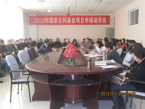 【澳门十大信誉网赌大全新闻中心讯 政法学院】为进一步推动学院科研工作的进展,政法学院于11月25日下午召开2013年国家社科基金项目申报动员会。学院全体教职工参加了会议,潘忠宇院长做了动员讲话。会议由任军书记主持。