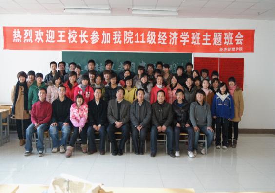 【澳门十大信誉网赌大全新闻中心讯 经济管理学院】12月15日下午,经管学院2011级经济学(1)班在文科楼401教室组织了“说文明话,做文明事,成文明人”的主题班会。信誉网赌副校长王燕昌出席本次班会并和同学们座谈。参加本次班会的还有学院党总支书记王海文,党总支副书记李文华,学生工作办公室主任张启明。
