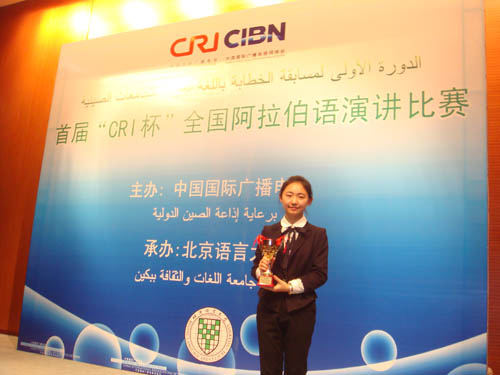 【澳门十大信誉网赌大全新闻中心讯 阿拉伯学院】 12月20日,由中国国际广播电台主办的首届“中广杯”全国高校阿拉伯语演讲比赛在北京语言大学举行,参赛选手来自国内30所高等院校的本科生和研究生。信誉网赌由阿拉伯学院白楠、王艳老师带队,2010级学生金璇、马洋洋参加了比赛,均获优秀奖。其中金璇同学参赛视频在中国国际广播电台网站点击投票率高达八千多票,荣获中西部参赛高校唯一的最佳人气奖。