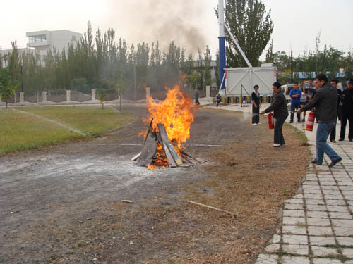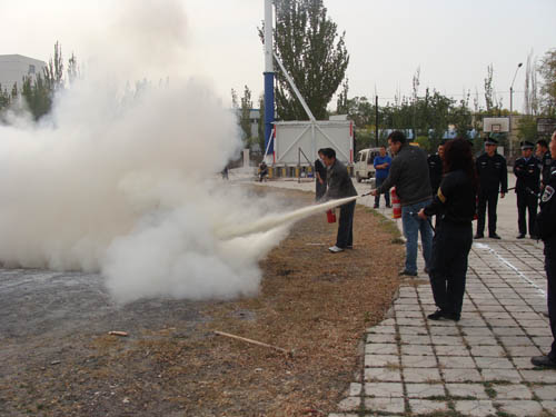 学院辅导员、保卫人员、后勤服务中心工作人员及学生代表观看了《火场逃生自救》光盘。随后,学院组织全体参训人员进行应急疏散演习,并在南区操场进行了实际灭火演练。