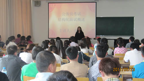 近年来,政法学院非常重视毕业生公务员应试能力的提高,在公务员笔试和面试方面采取多种措施,通过培训和讲座以提高毕业生的公务员应试能力。据统计,在自治区2011年上半年公务员考试中,学院有50名毕业生笔试成绩优异,进入面试,占2011届毕业生总数的25%。