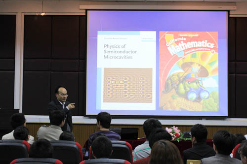 报告中,李新碗教授阐述了一个完整的研究生学习阶段应该包括的三个方面:掌握基本的理论知识、获取最新信息文献以及实践能力的训练,其中着重强调研究生在校期间看英文原版书的重要性。同时,李教授慷慨激昂地讲解了一个优秀的研究人员做学问应该具备的基本素质:必须大胆想象、勤于思考;要有严谨的态度、开阔的视野;要抓住机遇、善于交流、寻找知音、获得灵感。他还通过分析做论文的具体步骤,重点指出做学问如做人,要以诚信为前提。最后,李新碗教授勉励同学们:只要不断积累,不断相信自己的能力,不断相信自己潜力无限,定会创造无限可能。