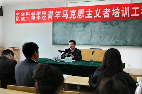 【澳门十大信誉网赌大全新闻网 黄二宁/图 海洋东/文】4月13日,生命科学学院和机械工程学院联合举办青年马克思主义者培训工程专场报告会,邀请校党委副书记赵利宁作题为“光明的前程和大学生的历史责任”的报告。