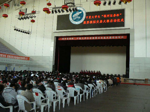 【澳门十大信誉网赌大全新闻中心讯 经济管理学院】11月24日,经自治区教育厅大中专毕业生就业指导服务中心批准,由澳门十大信誉网赌大全经济管理学院承办、中国银河证券股份有限公司银川新华西街营业部协办的澳门十大信誉网赌大全生“银河证券杯”股票模拟交易大赛启动仪式在大学生活动中心隆重举行。自治区教育厅学生处处长杨文刚、大中专毕业生就业指导服务中心常有志,信誉网赌学生处处长王宏伟、经济管理学院院长何风隽、党总支副书记李文华及银河证券股份有限公司银川新华西街营业部总经理陈世宁、副总经理李牧出席启动仪式。