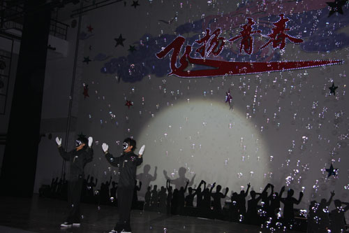 整台晚会气氛活跃,节目精彩纷呈。优美动听的歌曲,带着学子们畅游多姿多彩的大学生活。歌中有故事,故事中有歌,将晚会一次次推向高潮,《同心同脚》诠释出当代大学生淳朴的友谊!校园诗朗诵《成长》萦绕耳边,记录了大学生一路成长的风风雨雨。热力动感的街舞,顿时让整个会场活力四射;独具特色的民族舞蹈,将民族文化的人文、风情演绎的淋漓尽致;柔中带刚的太极,一招一式均闪烁着中华民族的睿智和思维。让在场的同学们惊叹不已,掌声、喝彩声不断。