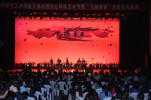 【澳门十大信誉网赌大全新闻中心讯 化学化工学院】11月10日晚,化学化工学院校园科技文化艺术节开幕式暨“飞扬青春”大学生风采秀在大学生活动中心隆重举行。学生处副处长王淑莲,学院领导常璇、潘瑞、张宁、任建林及三办主任和全体辅导员参加了晚会。