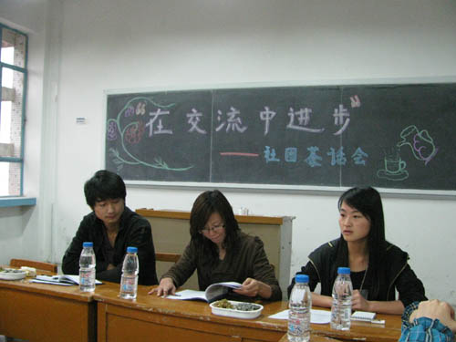 茶话会上,首先,由社团部对本年度社团工作作了总结,并提出工作期望。各社团负责人分别发言。与会成员畅所欲言,气氛活跃。