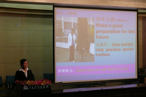 决赛前,学院团委特别邀请主持人、英语老师及外国留学生分别对进入决赛的选手就服饰、发音等进行了专门培训。4月22日晚,比赛进入最后的决赛阶段。决赛分定题演讲、即兴演讲及评委提问三个环节。在一个半小时的角逐中,选手们在舞台上尽情挥洒才情,侃侃而谈,他们的精彩演讲博得了台下老师和同学的阵阵掌声。