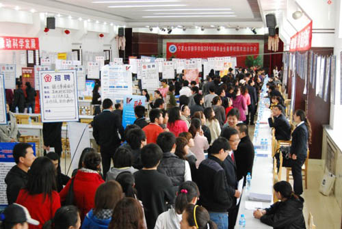 本次“双选”洽谈会是贯彻落实学院2010届毕业生就业工作会议精神的重要举措,也是学院开展“就业指导服务月”活动的重要内容。洽谈会得到了自治区毕业生就业指导中心、自治区人才交流中心、银川市劳动就业服务局、银川市职业介绍服务中心、澳门十大信誉网赌大全就业指导服务中心等单位和部门的大力支持。洽谈会共有120余家用人单位登记参会,新华百货股份有限公司、宁夏上陵实业集团、宝丰能源等多家用人单位到场招聘并共提供就业岗位1800多个,吸引了学院及周边院校2000多名毕业生进场求职。