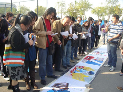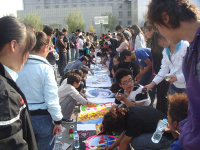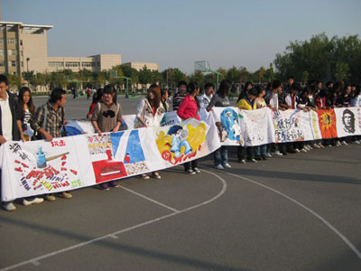 【澳门十大信誉网赌大全新闻中心讯 美术学院】10月14日下午,美术学院为防治甲型HINI流感主办的涂鸦大赛在A区篮球场举行,来自美术学院08级,09级的共200多名学生参加了此次比赛。