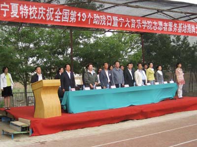 【澳门十大信誉网赌大全新闻中心讯 音乐学院】5月16日,在全国第19个助残日来临之际,音乐学院青年志愿者服务基地揭牌仪式在宁夏特殊教育学校成功举行。校党委副书记撒承贤及音乐学院领导班子、学办主任、辅导员,音乐学院的全体青年志愿者出席和参加了揭牌仪式。
