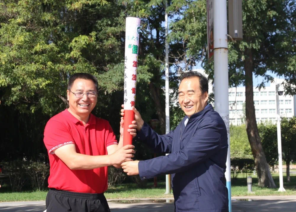 上午十时,环金波湖1958.9.15米长健步道的火炬接力拉开活动序幕,罗进德手持象征弘扬体育文化与传承宁大精神的火炬,从凌云广场出发,依次传递给体育学院领导、教师代表、2018级、2019级、2020级学生代表。教师代表中包含博士教师、导师班主任、行政教辅人员,高年级学生代表涵盖了学生党员、学生干部。