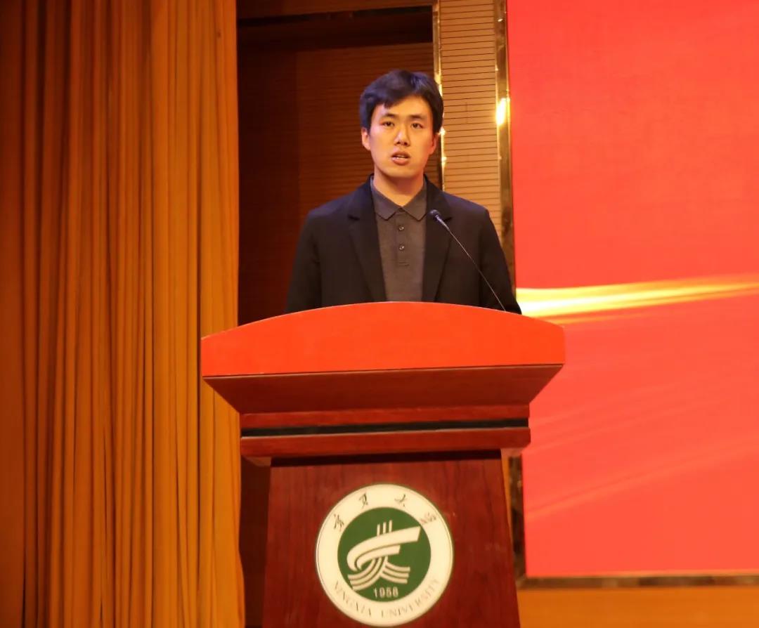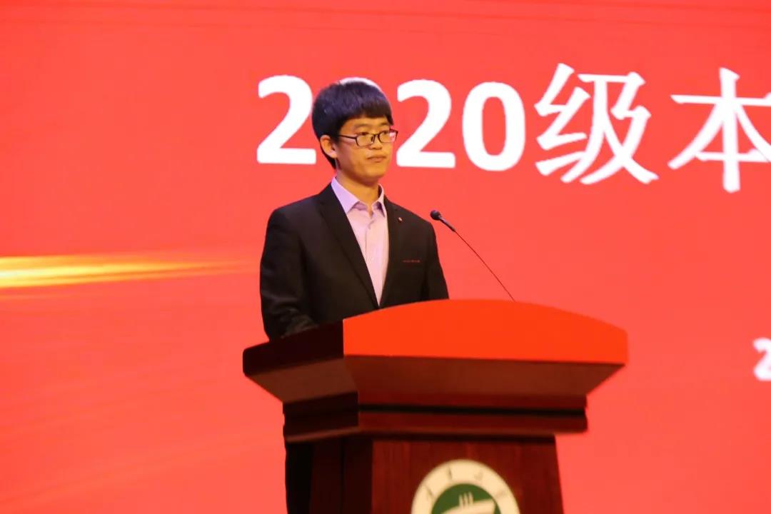 2017级软件工程专业袁志同同学代表老生发言,他结合自身经历为同学们分享了多姿多彩的大学生活。并寄语新生要珍惜青春年华,珍惜时代赋予的机遇,立鸿鹄志、做奋斗者,为强国复兴求真知,以时代新人的姿态做社会主义的接班人和建设者。