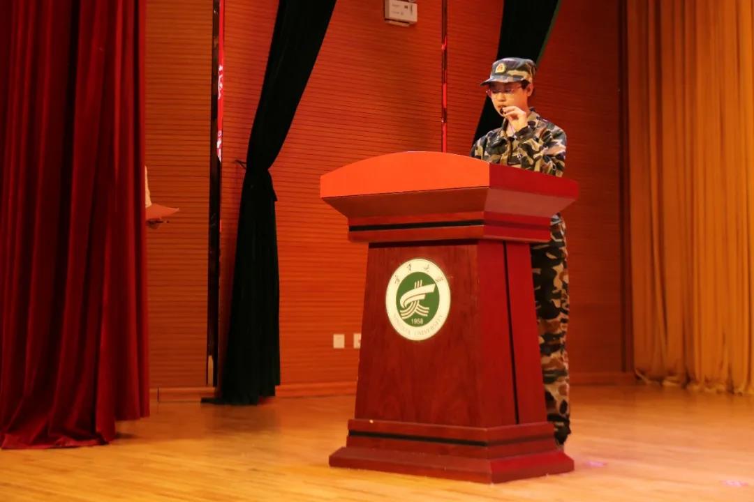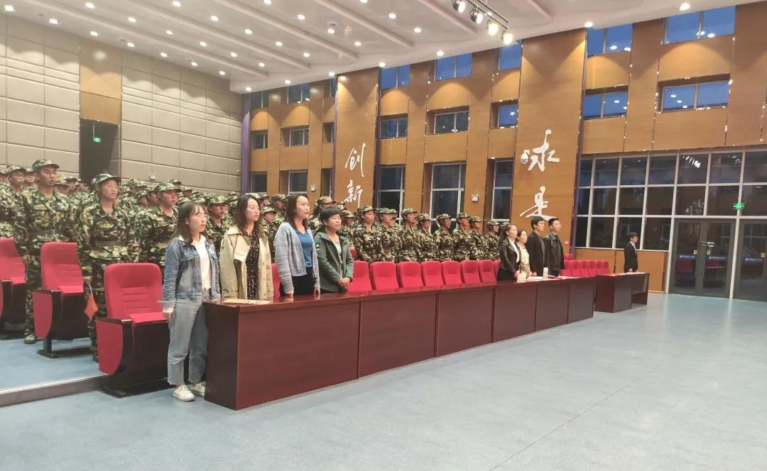 歌曲《我和我的祖国》旋律响起,应理报告厅响起动人的大合唱,开学典礼在“中国红”和“橄榄绿”的交相辉映中圆满结束。