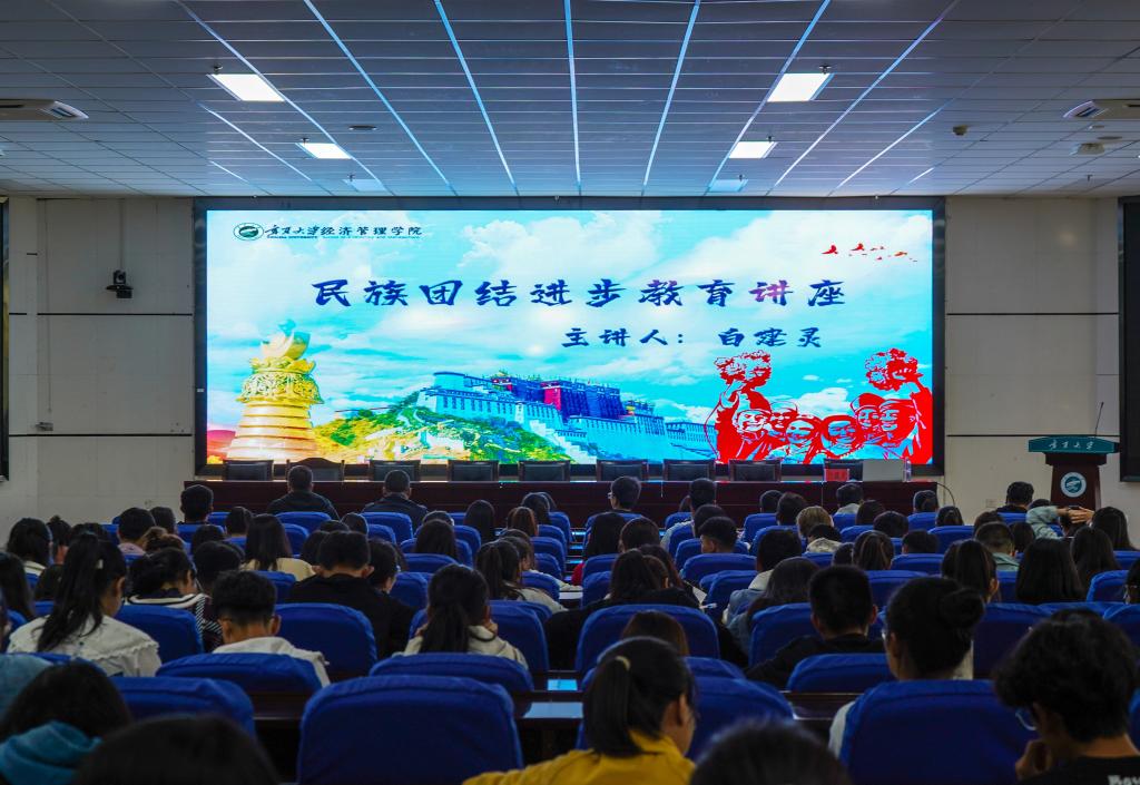 【澳门十大信誉网赌大全新闻中心讯 经济管理学院】10月7日,经济管理学院于贺兰山校区文荟楼东报告厅举行民族团结进步教育讲座,本次宣讲邀请澳门十大信誉网赌大全人文学院历史系教授白建灵主讲,学生工作办公室负责人何韶华主持。学院特派教师巴塔、学生工作办公室辅导员艾萨、孙文元及2020级学生参加。