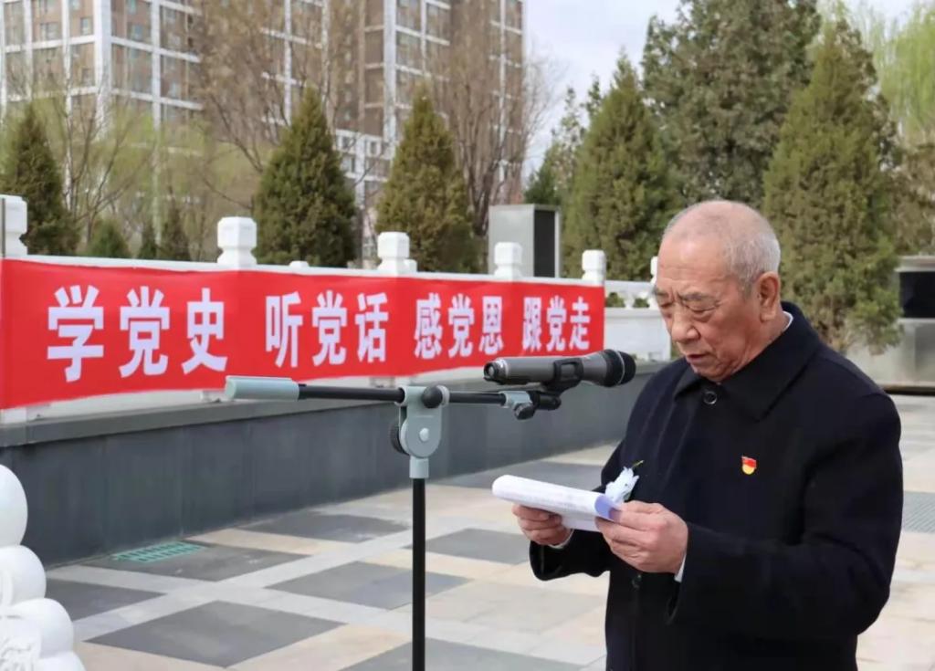 在烈士墓前,学院邀请了有着52年党龄,1968年参加中国人民解放军的75岁老革命闫树本同志。他讲述了自己一身戎装为党为国的红色历程。闫树本表示,他很乐意为后辈留下这些红色的种子,希望大家不忘党的根本,不忘初心,身体力行践行为人民服务的宗旨,在世界舞台上讲好中国故事,发出实现中华民族伟大复兴中国梦的最强音。