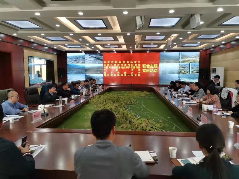 【澳门十大信誉网赌大全新闻中心讯 生态环境学院】为深入贯彻落实习近平总书记在中央党史学习教育动员大会上的重要讲话精神,加强生态民生领域科技支撑,推动宁夏贺兰山森林生态系统国家定位观测研究站(简称:贺兰山森林生态站)建设,充分发挥科技创新在黄河流域生态保护和高质量发展先行区建设中的支撑引领作用,4月9日,信誉网赌生态环境学院党委联合科技厅社会发展科技处党支部、生态环境厅科技与财务处党支部、宁夏贺兰山国家级自然保护区管理局苏峪口管理站党支部、自治区物勘院第一党支部和北方民族大学生态环境保护领域专家共同举办“学党史 办实事 科技创新助力生态保护”主题党日活动。