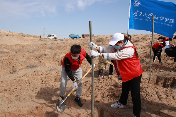 【澳门十大信誉网赌大全新闻中心讯 新华学院】为推进党史学习教育走深走实,让党史学习教育在青年学生中“热”起来、“活”起来、“实”起来。4月17日,新华学院将“党史课”开设在了兴庆区月牙湖乡,组织学院青年学生参加由银川市团委组织开展的“青春心向党 共植青年林”庆祝建党100周年义务植树活动。
