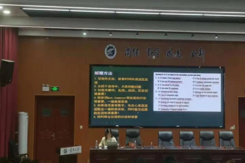 帮扶活动内容主要围绕试卷分析及五个主要题型展开。讲解过程中,讲解员为同学们介绍了四六级考试的题型、分值以及考试流程和注意事项;重点解读了英语四级听力题型的改革、听力的做题技巧,并以往年真题为例举一反三,从常见丢分原因以及考察方式入手,对各个题型特点逐个击破,并对答题步骤进行细致分析,引导同学们更好地掌握答题方法与解题策略和原则。