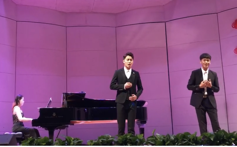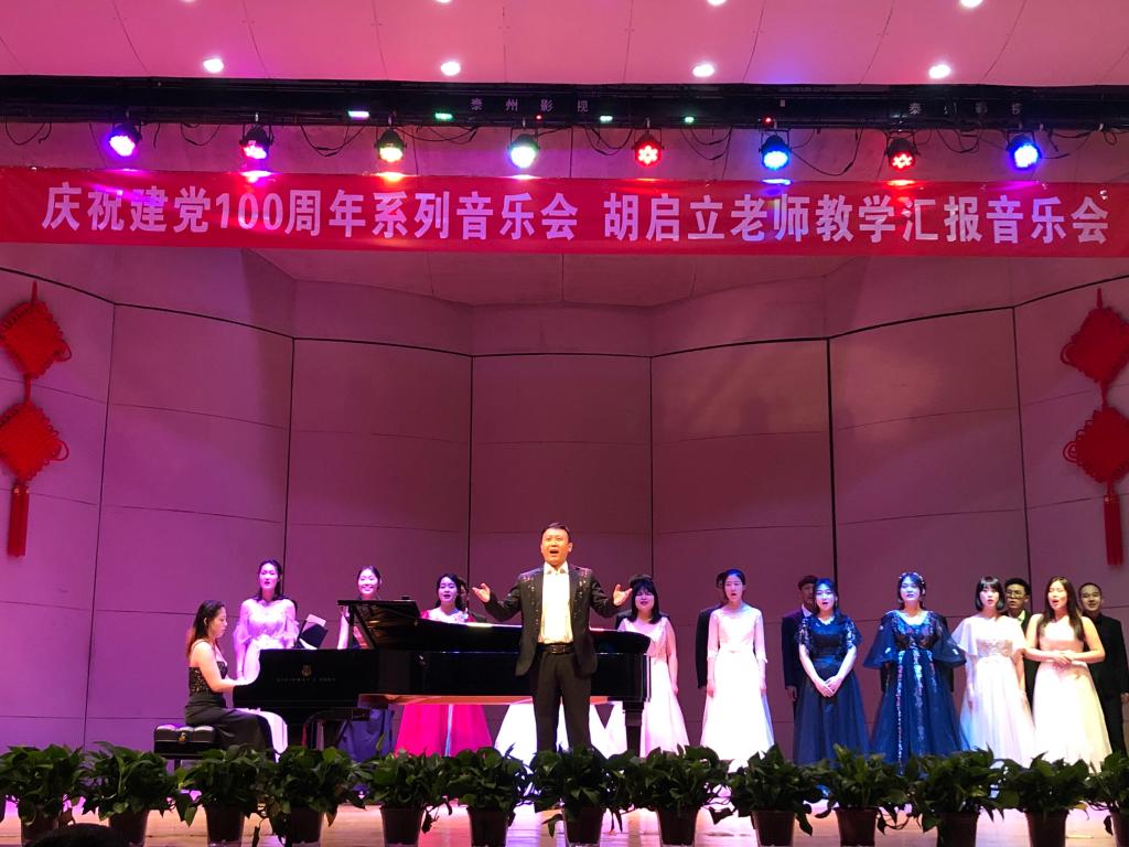 【澳门十大信誉网赌大全新闻中心讯 音乐学院】为深入开展党史学习教育,将学习党史同专业课程思政结合起来,根据音乐学院党委党史学习教育的安排部署,5月17日,音乐学院在德艺楼音乐厅举办“庆祝建党100周年系列音乐会”首场教学汇报音乐会。声乐系教师胡启立、钢琴系教师姜文静携手19名音乐教育专业本科生同台演出。