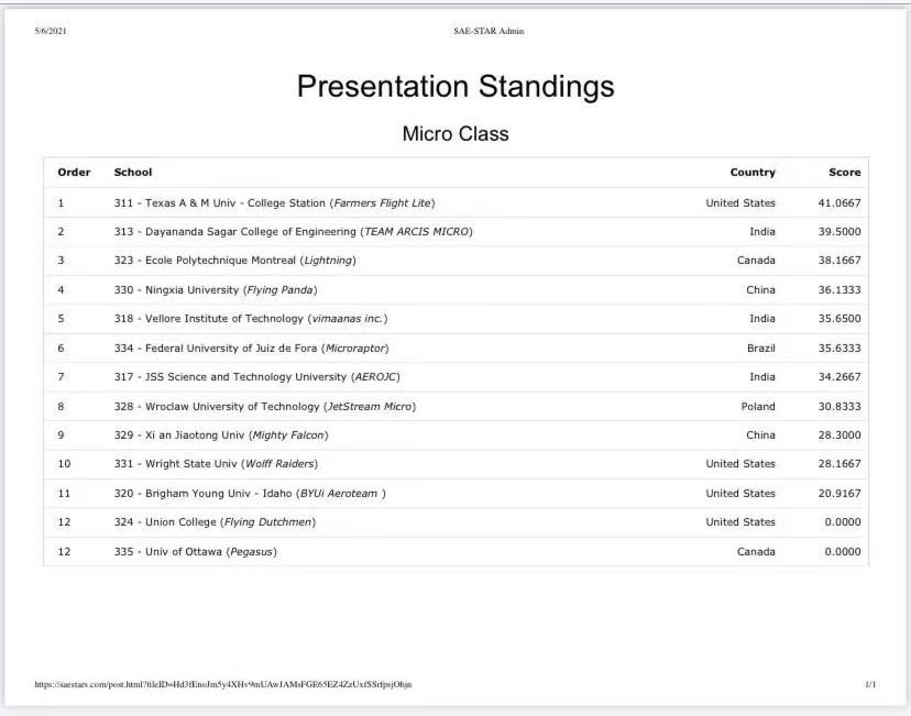 【澳门十大信誉网赌大全新闻中心讯 物理与电子电气工程学院】近日,2021 SAE Aero Design Challenge比赛评选结果揭晓,由信誉网赌物理与电子电气工程学院张虹波、匡银虎教师指导,高海涛、买婷婷等同学参与的竞赛类“SAE微型组”项目获得展示答辩第四名。