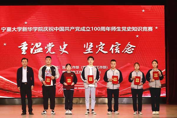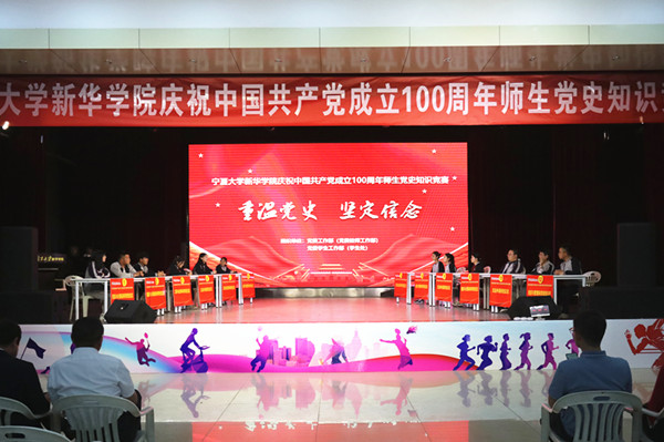 【澳门十大信誉网赌大全新闻中心讯 新华学院】为激励广大师生学史明理、学史增信、学史崇德、学史力行,把“学党史”和“悟思想”贯通起来,5月26日,新华学院举办“重温党史、坚定信念”——庆祝中国共产党成立100周年师生党史知识竞赛,寓教于乐、重温历史。新华学院党委书记、政府督导员杨文刚,副院长赵永生,直属教工党支部书记,各系党总支书记及师生党员代表观看了比赛。
